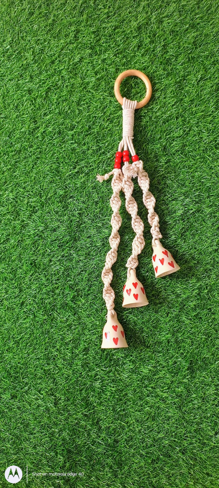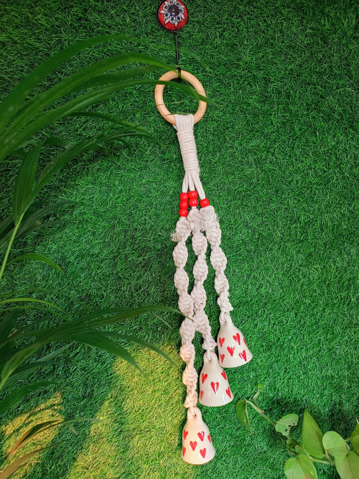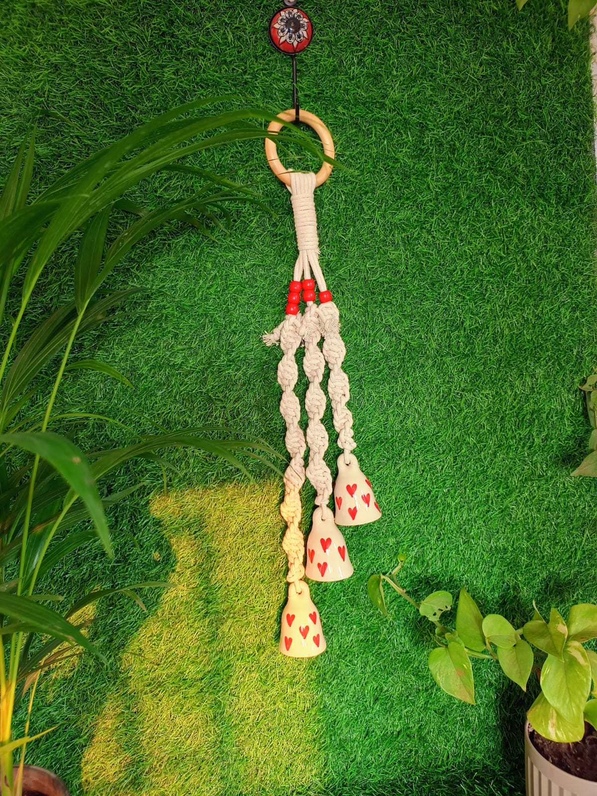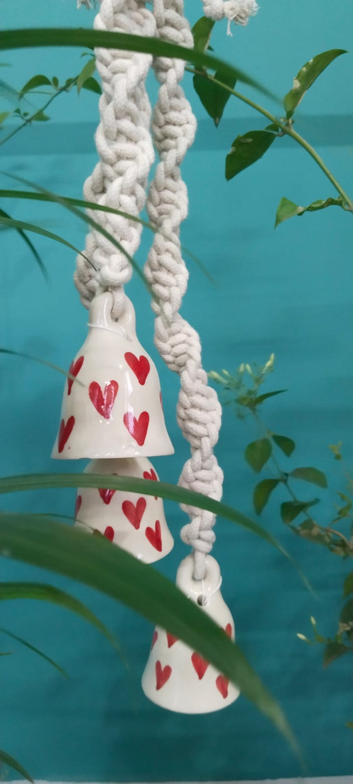 Bring a touch of love, charm, and melody into your space with this beautifully handcrafted Macramé Ceramic Bell Wind Chime.