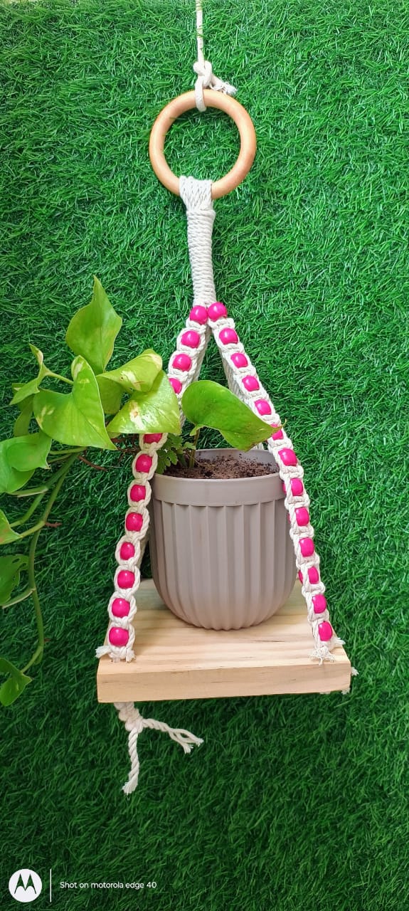 Add charm, color, and greenery to your space with this handcrafted Macramé Plant Hanger with Wooden Base. Designed with love, it’s the perfect blend of modern boho vibes and natural beauty.